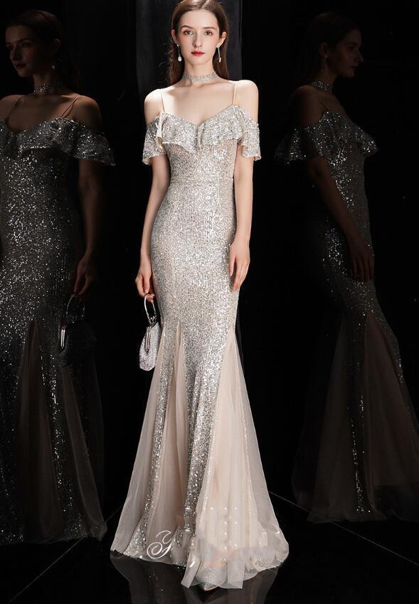 - 夏新作上質演奏会 発表会 結婚式 撮影 パーティー ステージ ロング ドレス シルバーYWQ1613