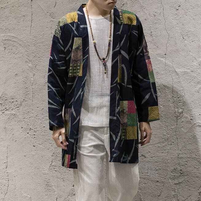 - ☆新品メンズ ロングコート ジャケット カーディガン カジュアル アウター マント 長襦袢 春夏着 綿麻 薄手 和服 ゆったり 黑 M~5XL