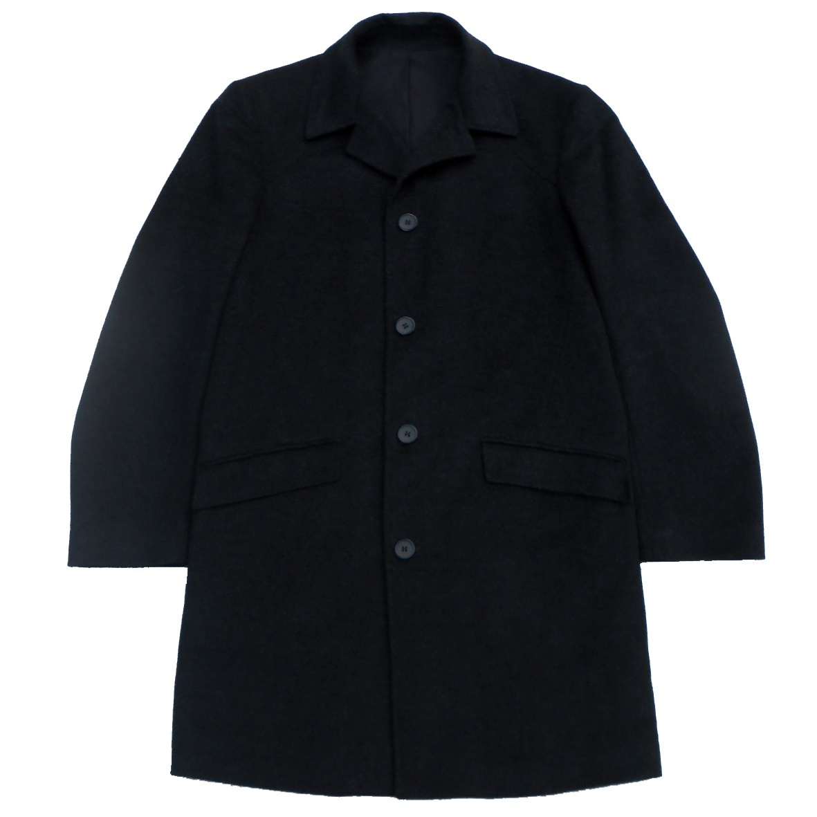 > 美品 正規 ALAN SCOTT アランスコット 48 カシミア混フラノウール ステンカラーコート L 霜降ミックス濃グレー ビームス BEAMS コロネット