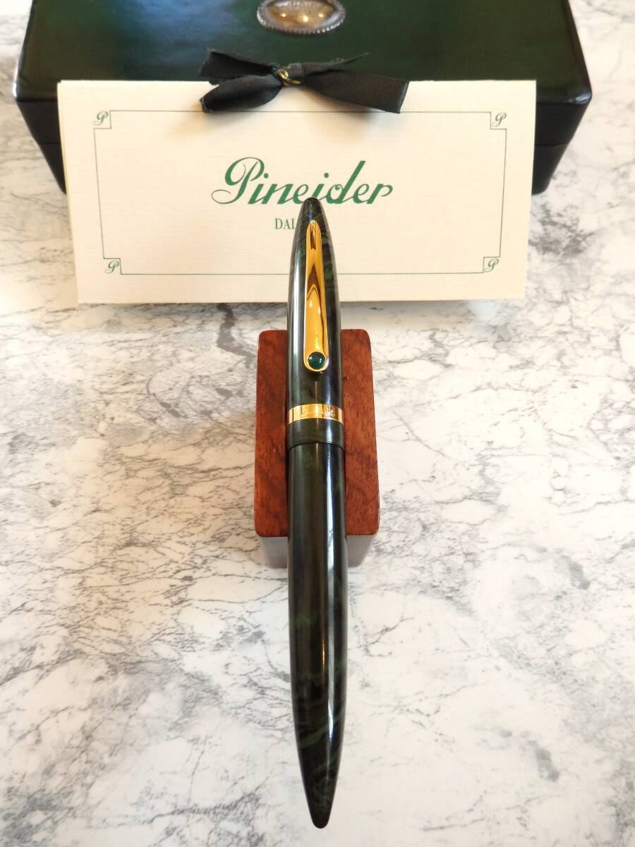 > ◆【新品・未使用】イタリヤ製 Pineider ピネイダー グリーンエボナイト万年筆 ピナイダー ペン先:18金750ソリッドゴールド M