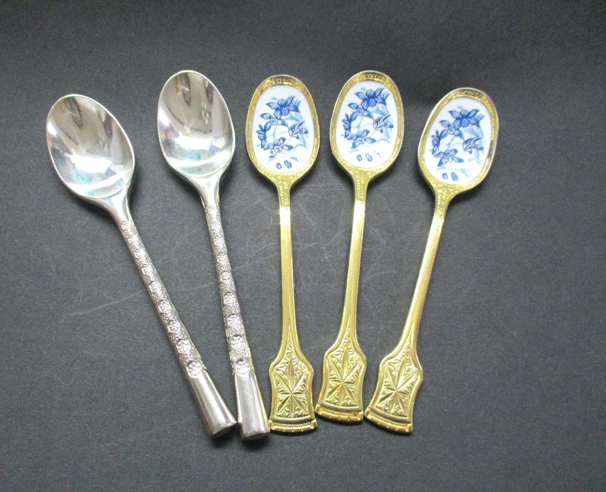 > ★98771 ティースプーン Brite2本+七宝焼レトロ 3本=5本 お茶 デザートスプーン シルバー W2.5x全長12㎝ 七宝焼 W2.5x全長11.5㎝ 中古★