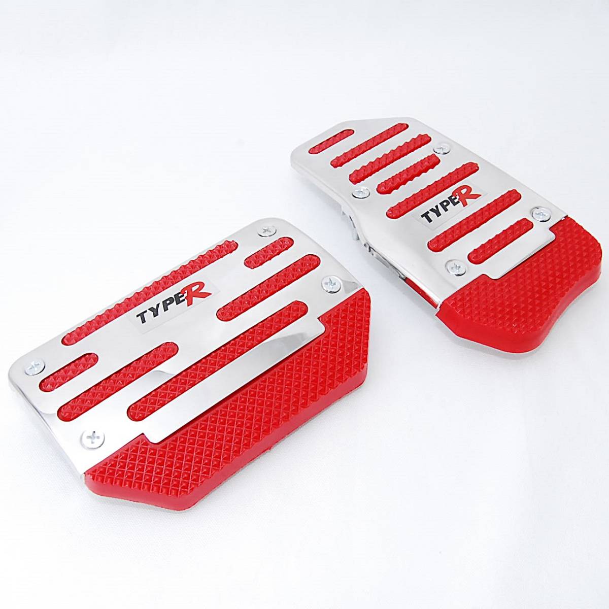 - 【送料一律185円】 AT車 Type R フットペダルカバー レッド 2個セット アルミ ステンレス ペダルカバー 汎用 AT用 赤 ブレーキ アクセル