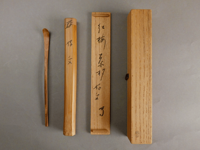 - 官休庵 有隣斎 紅梅 茶杓 銘「好文」 好斎 下削