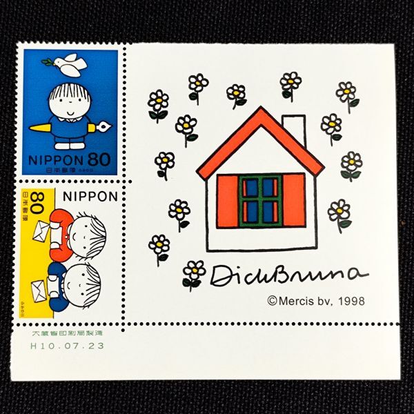 - [24112406]【ふみの日 1998年】単片2種 銘版・年月日・タブ付 ディック・ブルーナ「おそらのきもち・ふたりでよむの」80円×2 美品