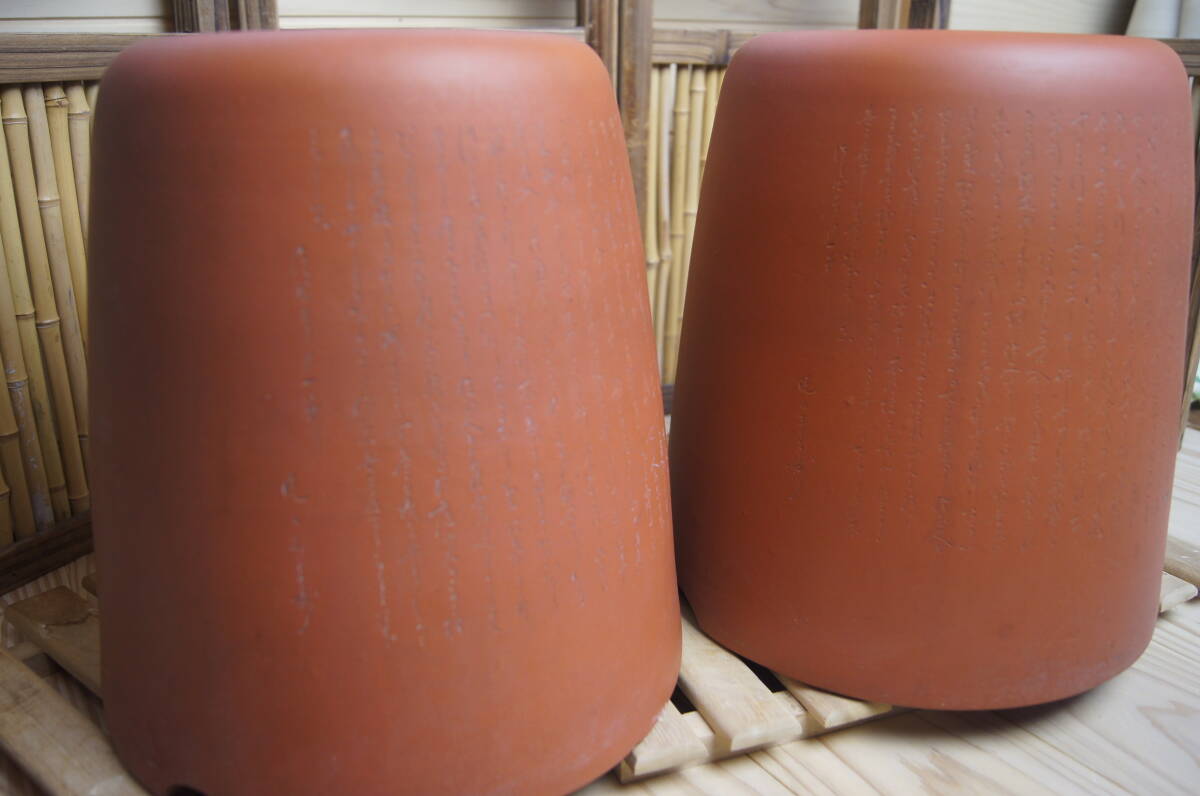 - 常滑焼名工 朱泥火鉢一対 手炙り 古民具 囲炉裏 高さ26㎝ 直径約18㎝