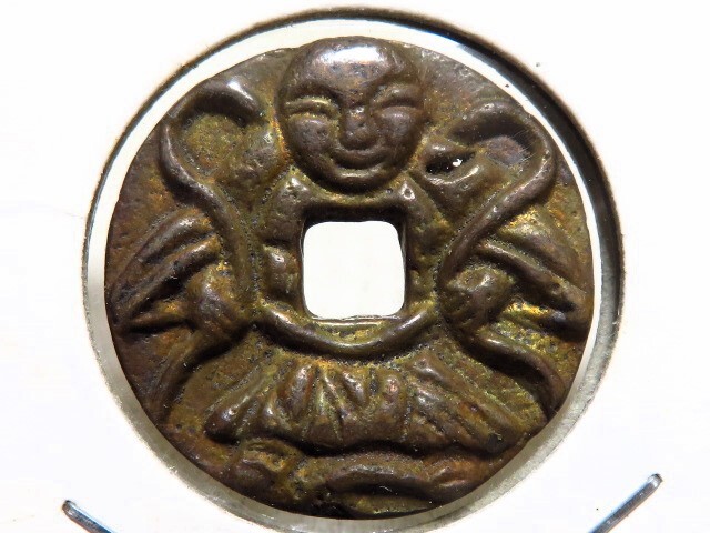 - 絵銭 周元通宝 仙人 直径約23mm 穴銭 中国 古銭