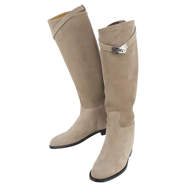 - エルメス ブーツ レディース ジャンピング 24.5cm シェーブルヴェロア ベージュサーブル 3106