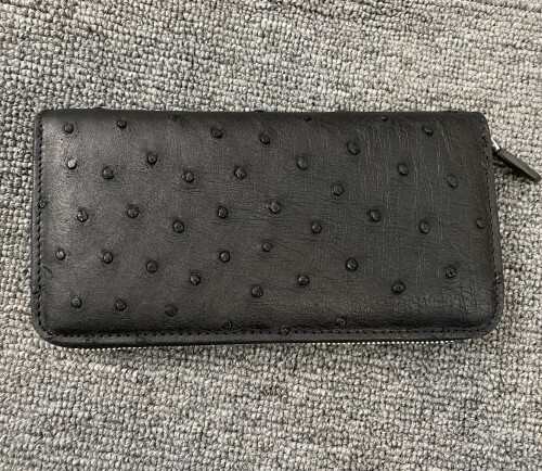 - 新入荷上質ギフト最適ダチョウ本革長財布オーストリッチ本革本物 カード入れ ウォレット レザー財布 小銭入れ ラウンドファスナー ブラック