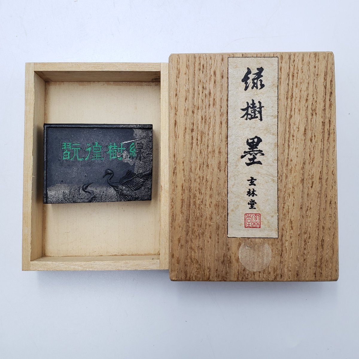 - 玄林堂 緑樹墨 34.4g 寧楽山荘主人蔵墨 緑樹翫? 固形墨 古墨 書道具 習字道具 写経 墨汁 骨董 古物 唐物 中国美術 【プt3975】