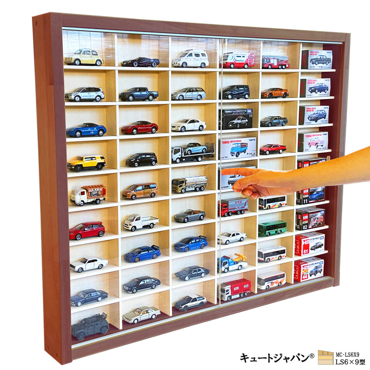- 送料無料★【ゆったり収納】木製トミカケース 54台収納 コレクション ディスプレイ アクリル障子付 マホガニ色塗装 日本製