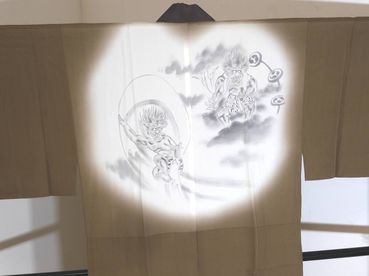 - <銀の斧>正絹・風神雷神の男性用袷長襦袢・袖無双・ぼかし染め・長じゅばん