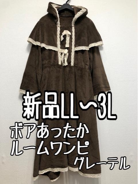- 新品☆LL~3L♪茶系♪グレーテル♪ふわもこ暖かルームワンピ☆w895