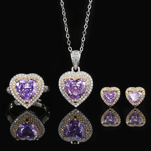 > 女性用アメジストジュエリーセット 、 高級ウェディングアクセサリー◆最初の入札者様に限り、開始価格で購入可能 Kn