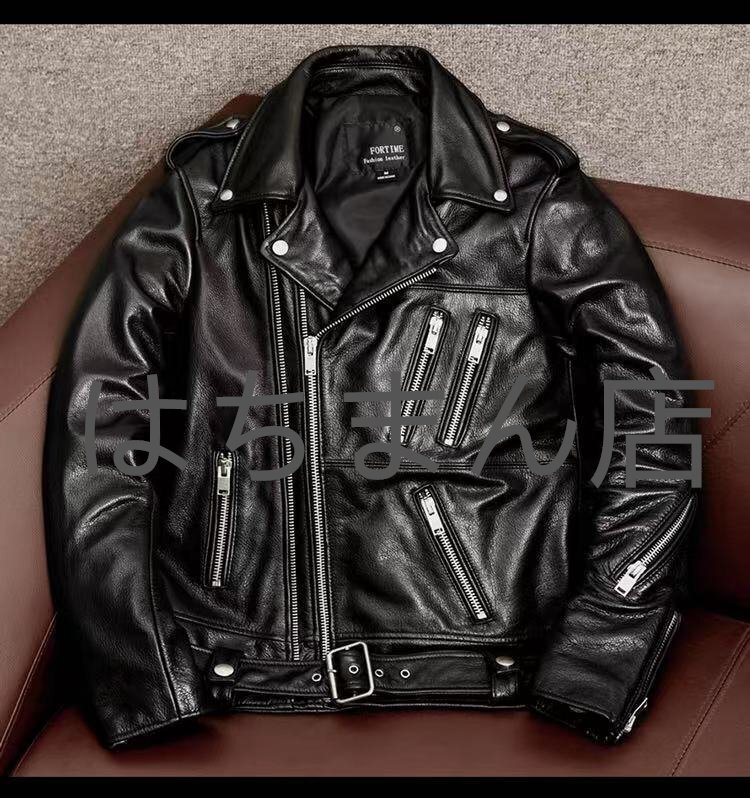 - 牛革 レザージャケット 本革 ライダースジャケット メンズファッション バイクジャケット 牛革 革ジャン S~4XL