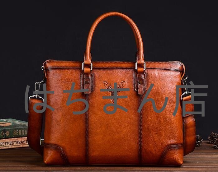 - 手染め ヌメ革 ハンドメイド メンズバッグ 本革 ビジネスバッグ サイズ対応 14ノートパソコン入れる可能 通勤