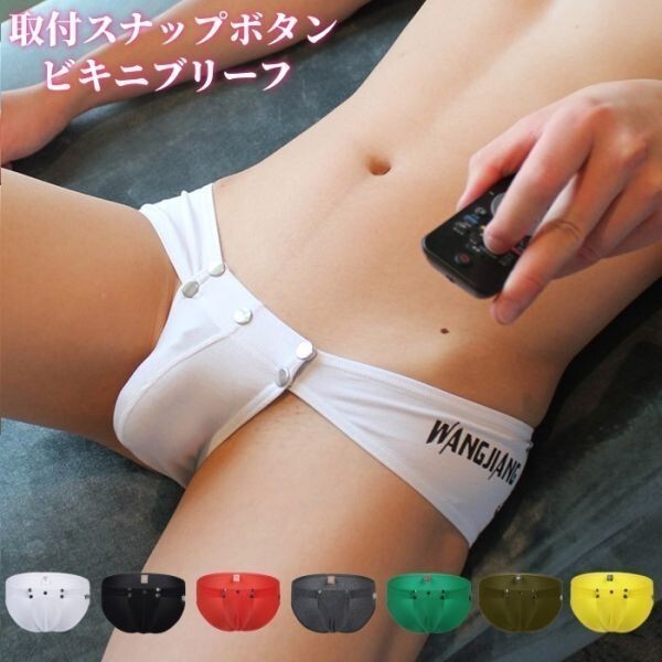 > メンズビキニ パンツ ローライズ男性下着 ビキニブリーフ 前開き 前ボタン付き セクシ下着 レッド LL SJ0014