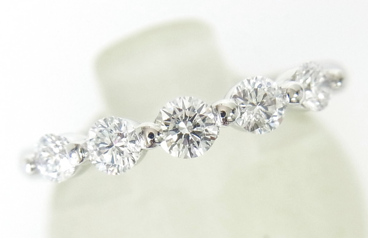 - 最高級エクセレントカット ハートアンドキューピッド鑑定 天然ダイヤモンド5石0.50ct エタニティーリング 送料込