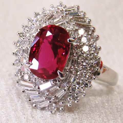 > 【値下げ交渉は質問欄より】絶賛のルビーカラー2,73Ct☆目を奪われる素敵なキラキラリング!プラチナ製指輪#14,5号☆鑑別☆