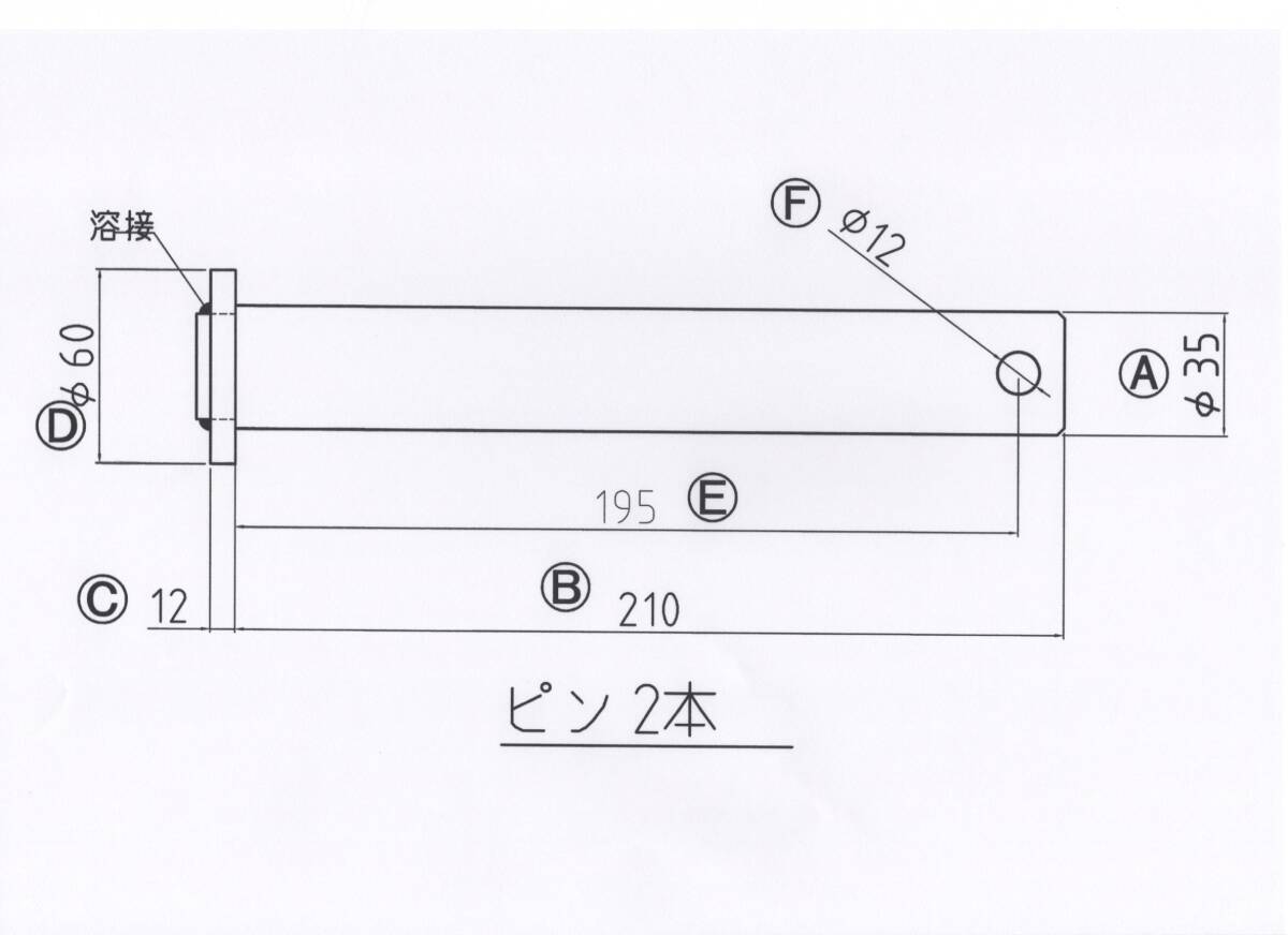- NO 1940 Φ35用 溶接ツバ下210mm バケットピン 2本1セット