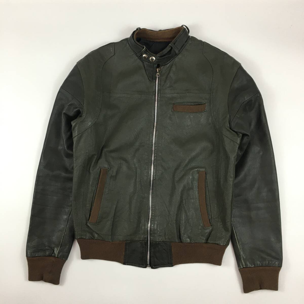 - レザージャケット シングルライダース 革ジャン カーキ メンズ サイズS相当