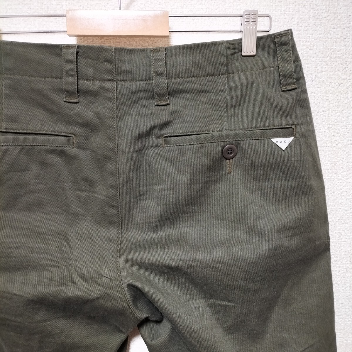 > ★H.A.K.U BRIAN HK-0018 ワイドストレート チノパン トラウザーパンツ コットン ストレッチ ボトムス カーキ メンズ sizeM ハク 古着 USED