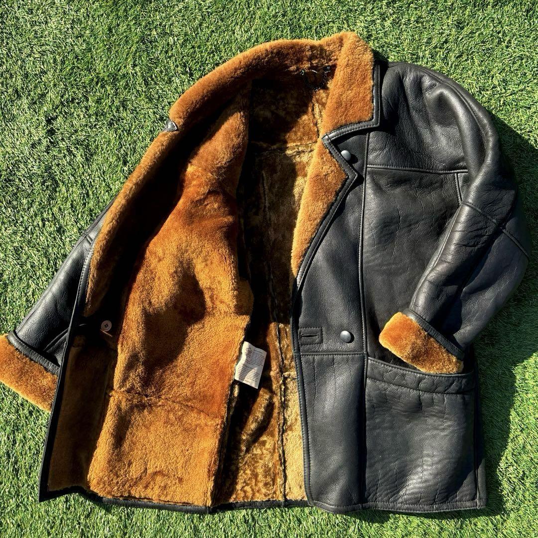 > 美品 38 上質 本革 羊革 ラムスキン ムートン レザー ジャケット コート 黒茶 ゆるだぼ 古着 男子 紳士 メンズ ブルゾン 革ジャン