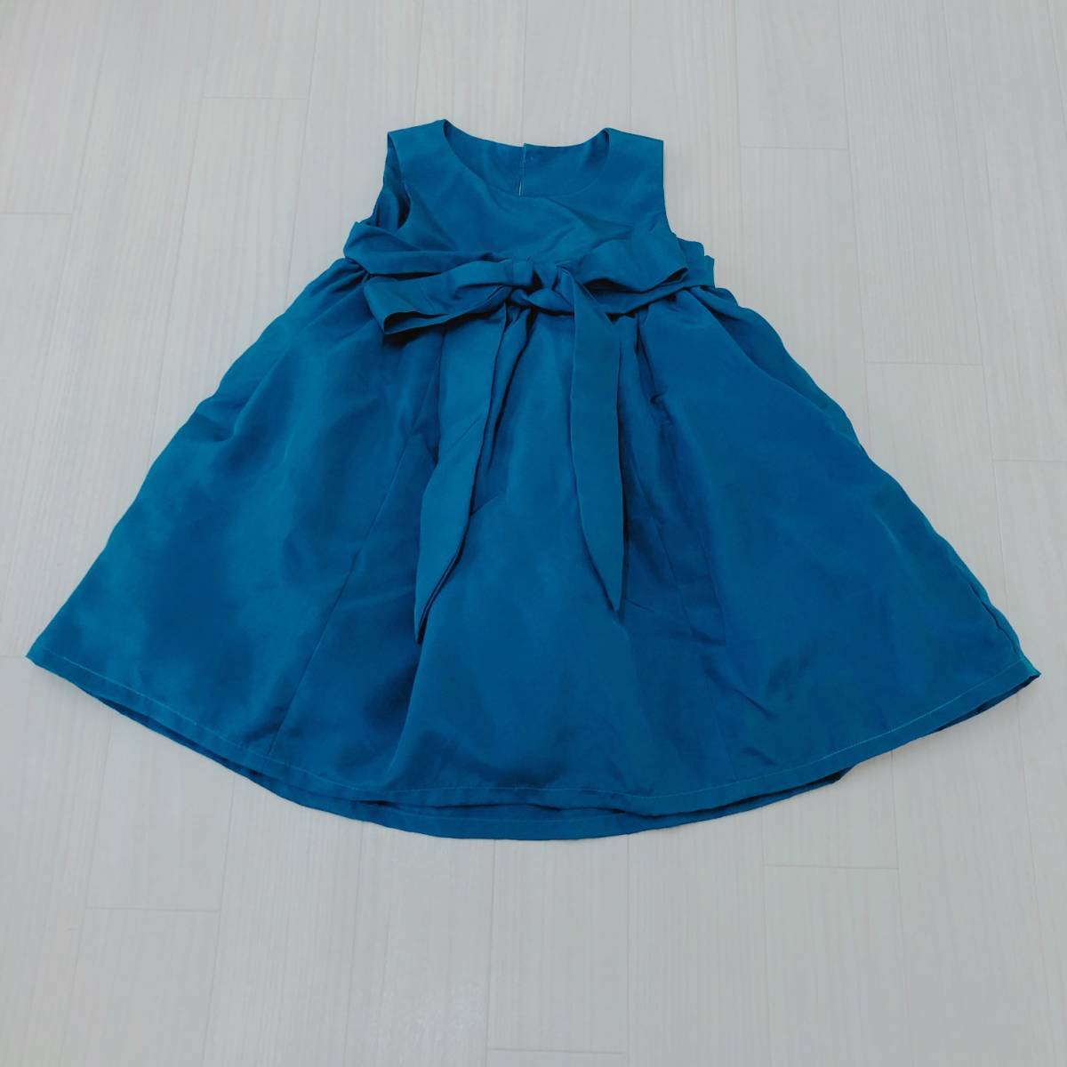 > YAS1037 キッズ ワンピース ドレス 袖無 ノースリーブ 子供服 リボン ターコイズ 青緑 無地 ハンドメイド 手作りフォーマル 結婚式パーティ