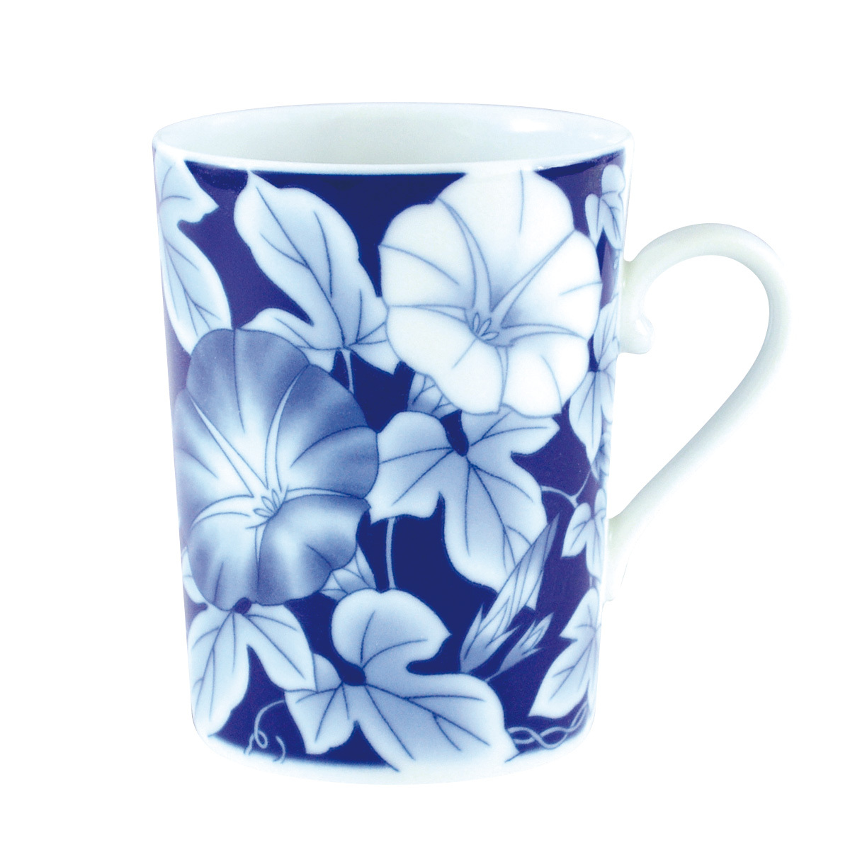 - 香蘭社 あさがお柄の マグカップ 300ml 有田焼 日本製 爽やかな藍色のトーンが美しい 底面にあさがおの花言葉の「絆」の文字が入っています