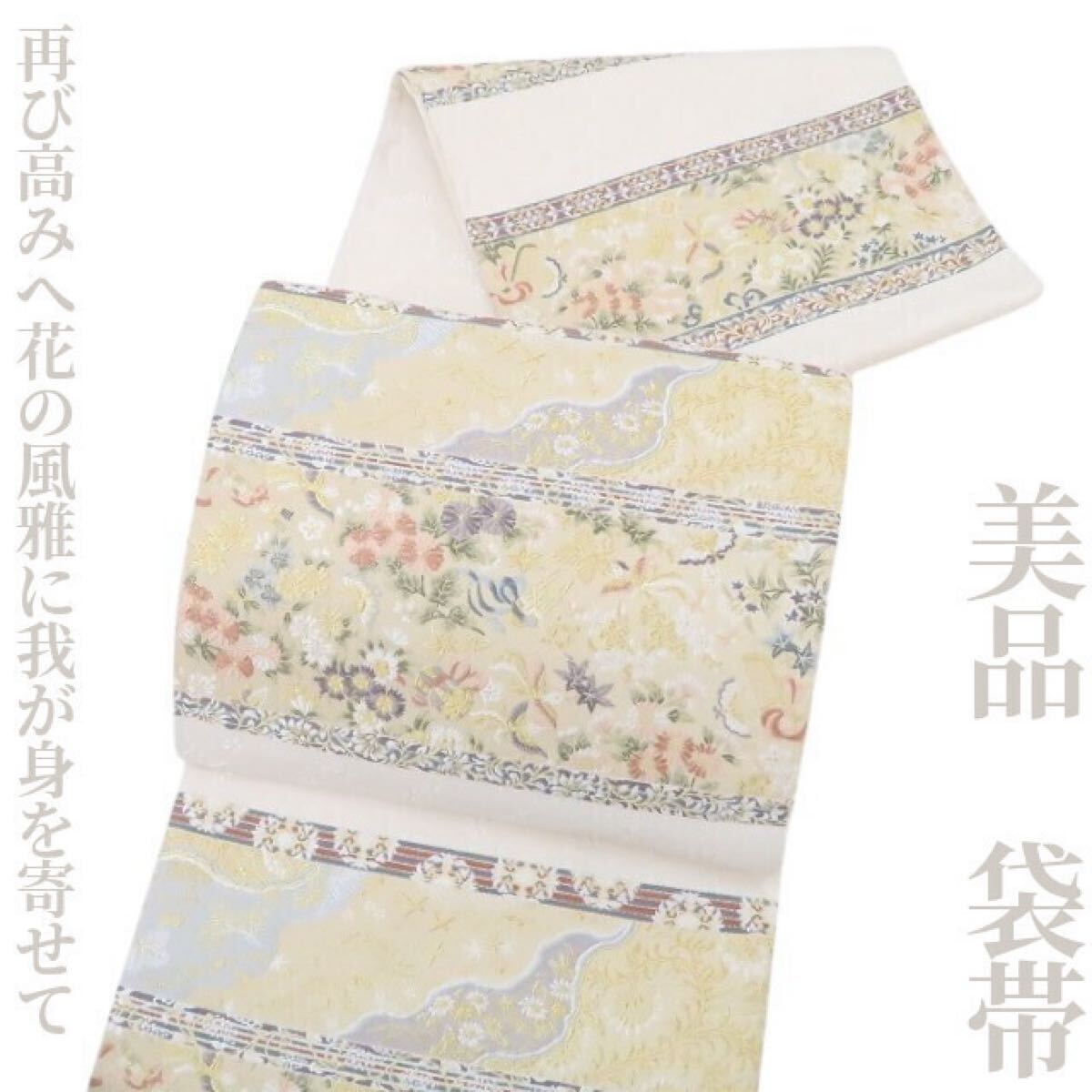 - tomihisa 美品 着物“再び高みへ花の風雅に我が身を寄せて”正絹 袋帯 4803