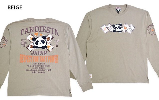 > トランプゲームパンダロングTシャツ◆PANDIESTA JAPAN ベージュXXLサイズ 564358 パンディエスタジャパン 刺繍 長袖