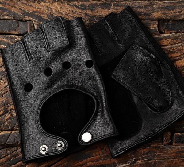 - 推薦 冬 新品/上質 本革 フィンガーレスグローブ ハーフフィンガー ジムワークアウト フィットネス ドライビング 本革 グローブ / ブラック