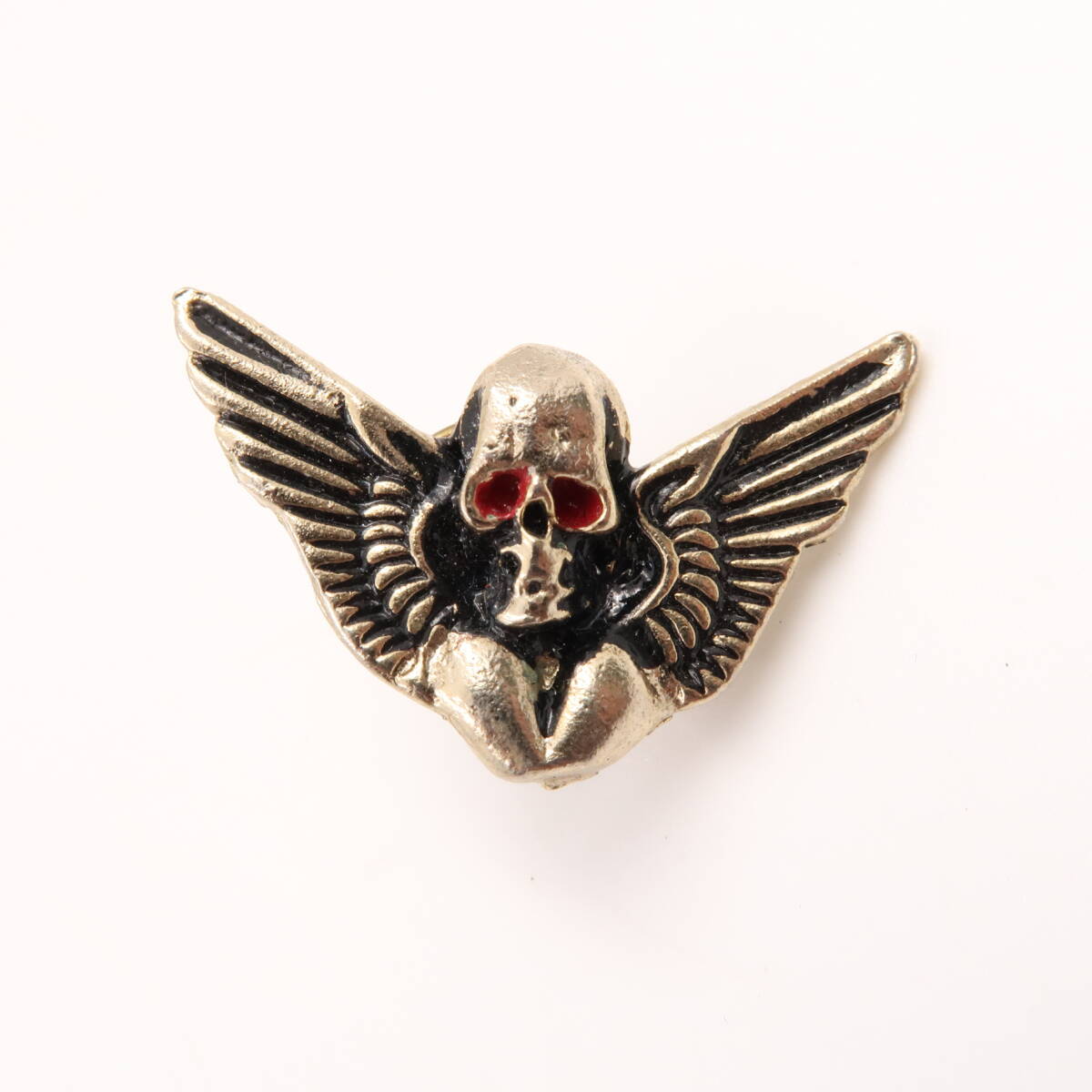 - スカル ウィング ビンテージ ピンバッジ 頭骨 羽 USA HARLEY DAVIDSON CHOPPER ベスト