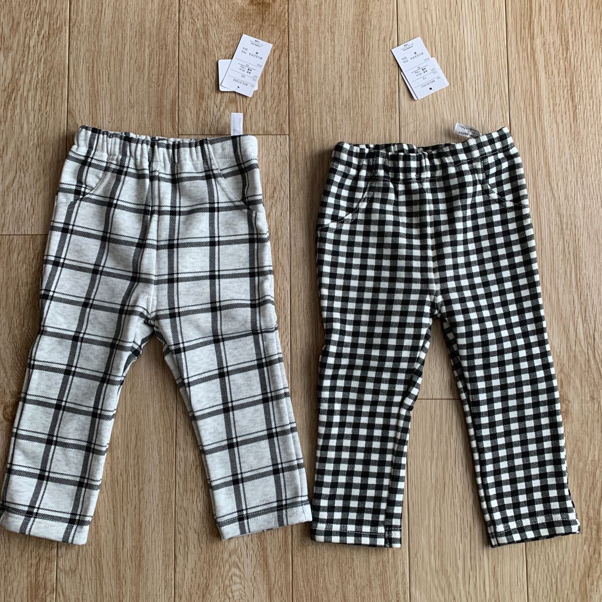 - ベビー 裏起毛 チェック柄 パンツ 90cm 2枚セット