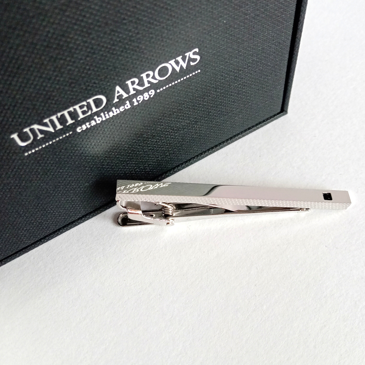 > 【uat459】UNITED ARROWS ユナイテッドアローズ ネクタイピン タイバー シルバー×ブラック 黒 JET ジェット 魔除けのパワーストーン