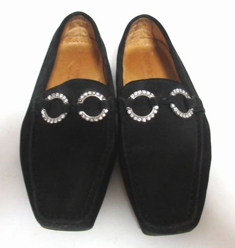 - ♪FOXEY BOUTIQUE (フォクシーブティック/イタリア製)ヌバック×ラインストーンデザイン/フラットシューズ/黒/サイズ34/小さいサイズ