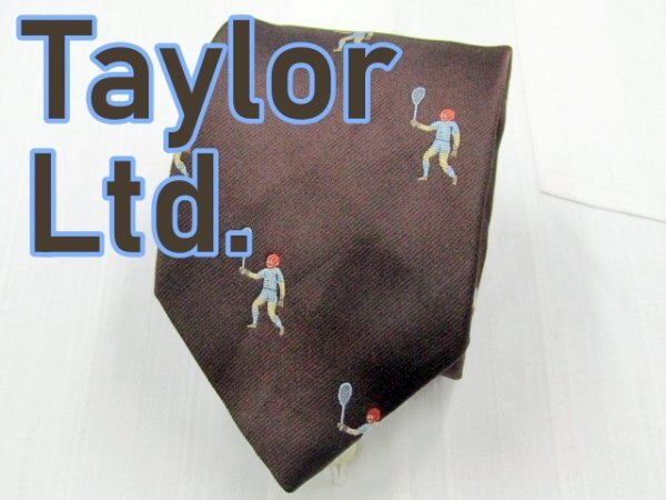 - 【テニスプレーヤー】 NA 936 テイラー Taylor Ltd. ネクタイ 茶系 スポーツ テニス ジャガード