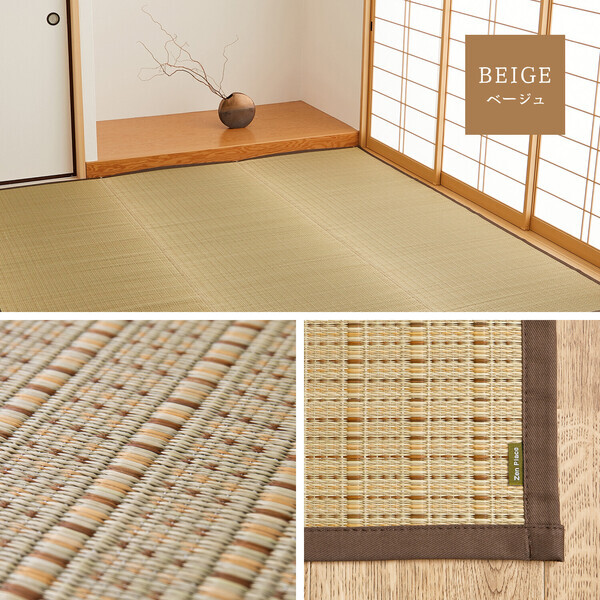 - カーペット 国産い草カーペット 江戸間3畳 柄上敷き 花ござ 紋織 清涼 ベージュ 江戸間 本間 1~8帖