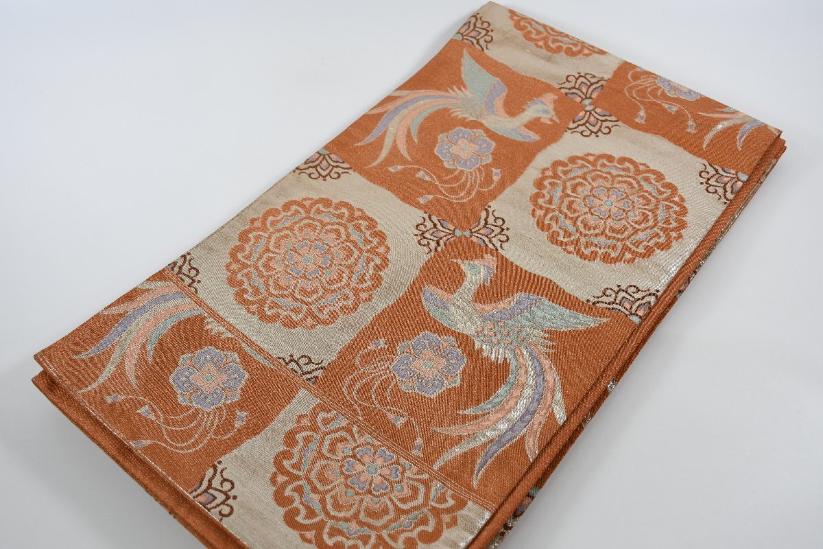 > 袋帯 六通柄 鳥 花 市松模様 帯丈436cm ★着物屋 ne-13469 桜庭呉服店