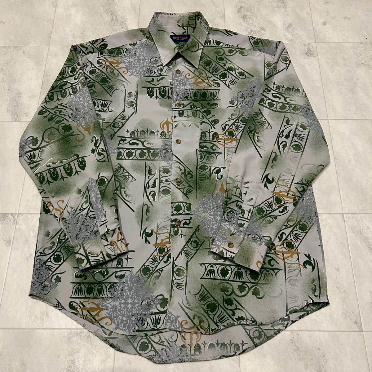 - TEDDY WILSON 総柄 柄シャツ レトロ アート ビンテージ 長袖シャツ ポリエステル100%