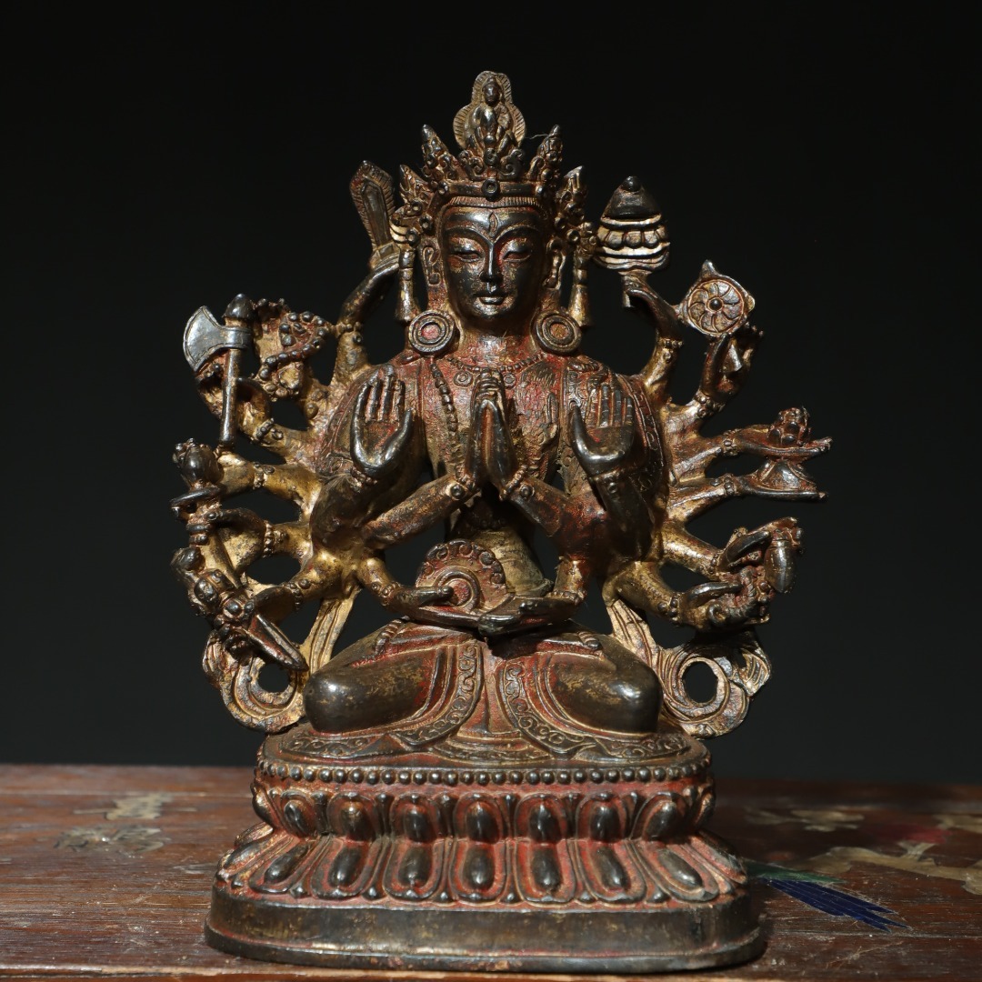 - ◆旧家蔵出◆古美術 中国古玩 明時代 古銅製 拓金 千手菩薩 仏造像 細密細工造 置物 擺件 古賞物 骨董 時代物 A01