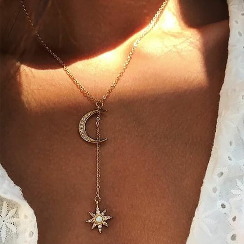 - 022 ネックレス レディース 【ゴールド】 チェーン 太陽 月 サン&ムーン アクセサリー ペンダント 三日月