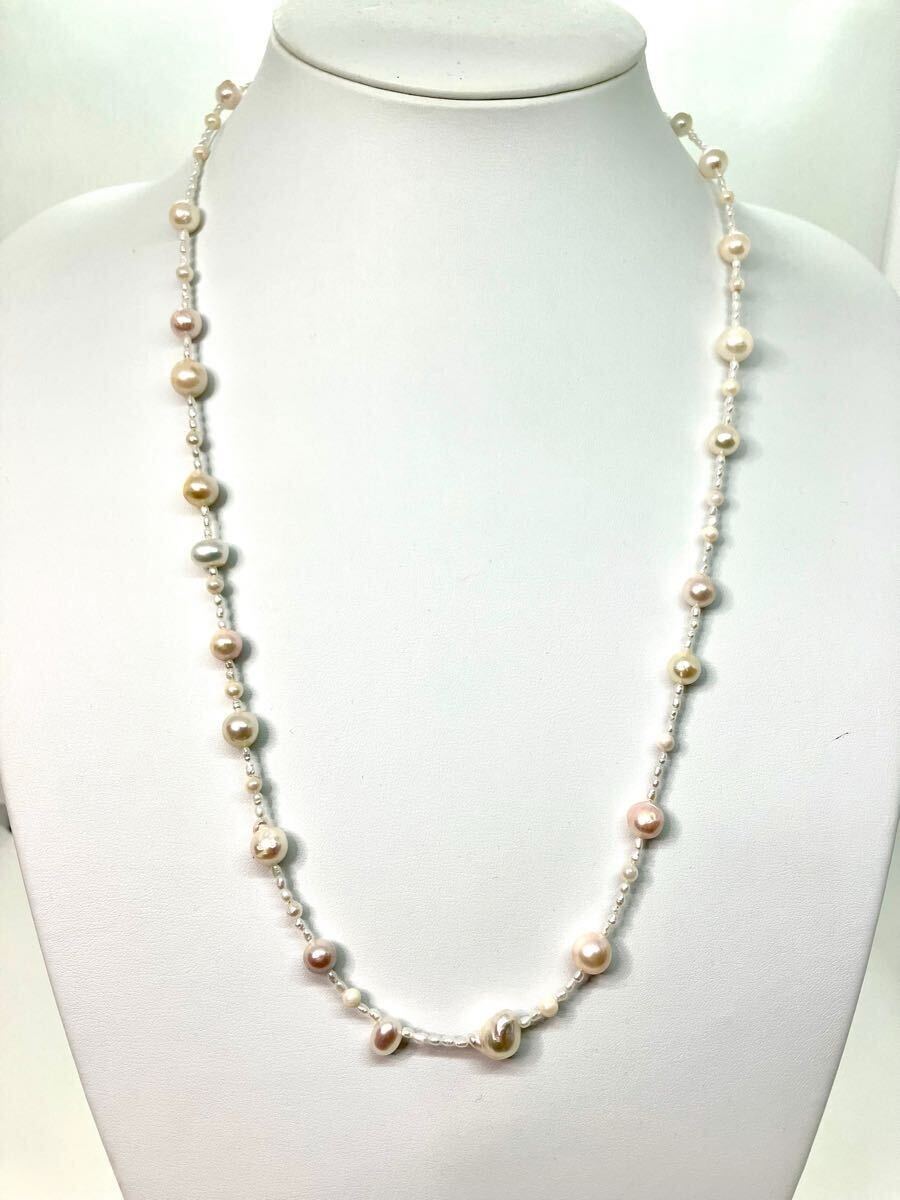 - 【新品】淡水ロングデザインパールネックレス*天然*一点もの*ライスパール