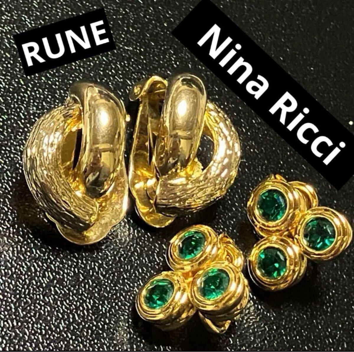 - 【ws715】Nina Ricci、RUNEヴィンテージ イヤリング セット ゴールドカラー グリーン ニナリッチ