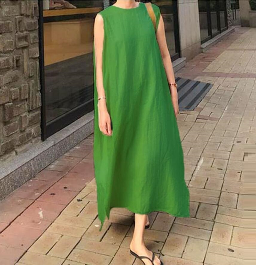 > 新品 人気推薦 / ワンピース リネンワンピース 亜麻混 夏 ノースリーブ きれいめ体型カバー カジュアル きれいめ マキシワンピ /グリーン