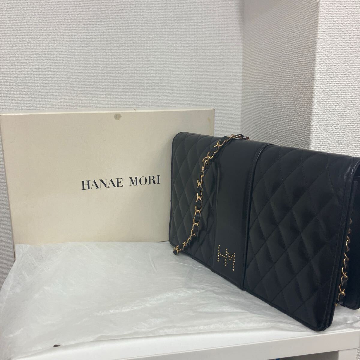 - ★HANAE MORI ハナエモリ チェーンショルダーバッグ ブラック キルティングハンドバッグ フォーマル箱付 レディースバッグ 送料無料 F-3