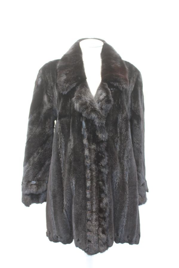 - ブラック シェアード・ミンク毛皮ファー・コート アメリカンサイズ6