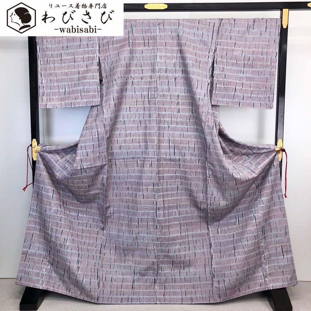 鳩羽色ベースのお色に雰囲気の良い縦横の絞り柄がデザインされた素敵な柄裄のお品でございます。