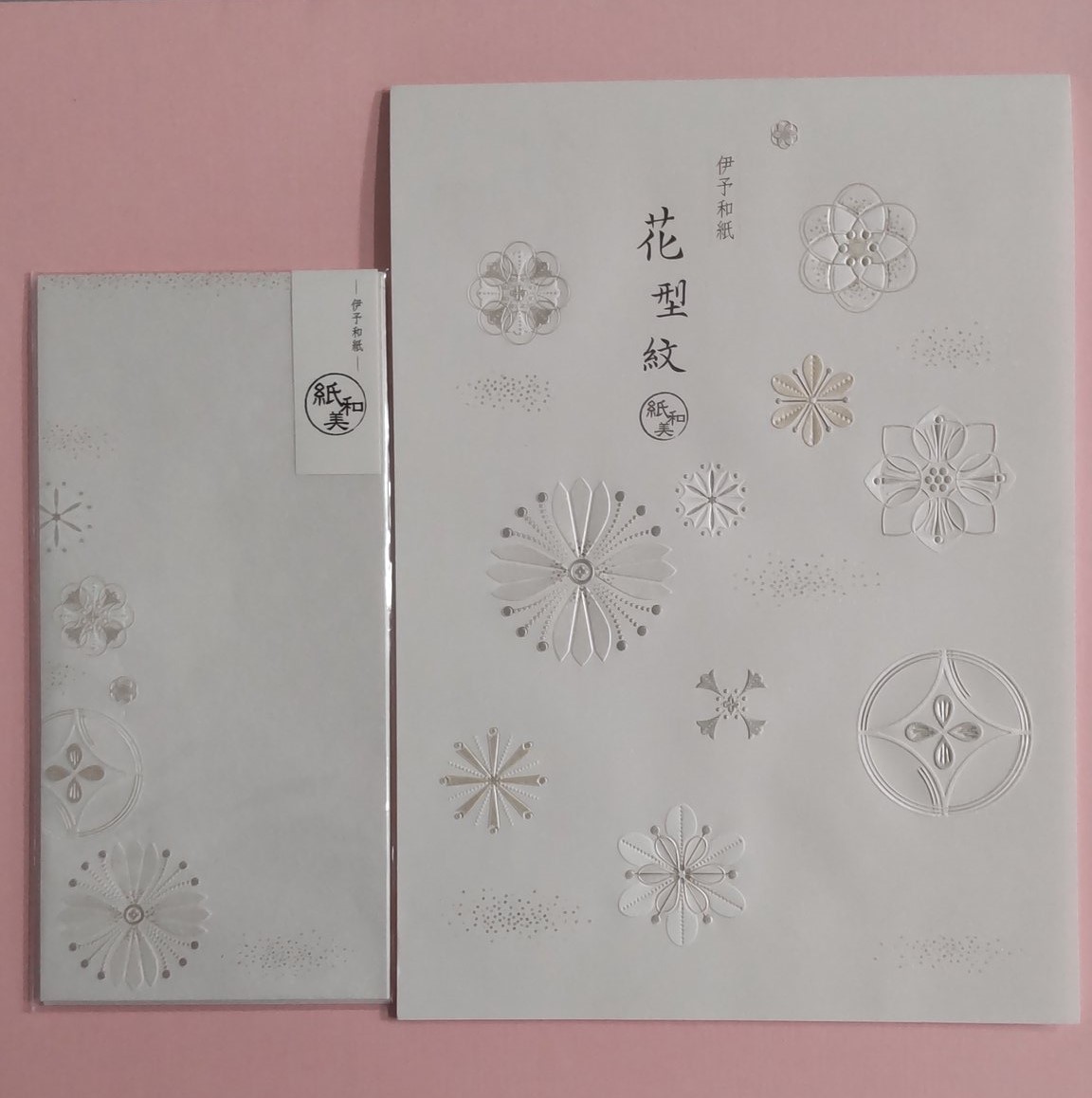 - レターセット 便箋 封筒 伊予和紙 花型紋 和柄 和風 エンボス加工 EEP-733-148 EEE-733-186 ホールマーク 新品未使用品