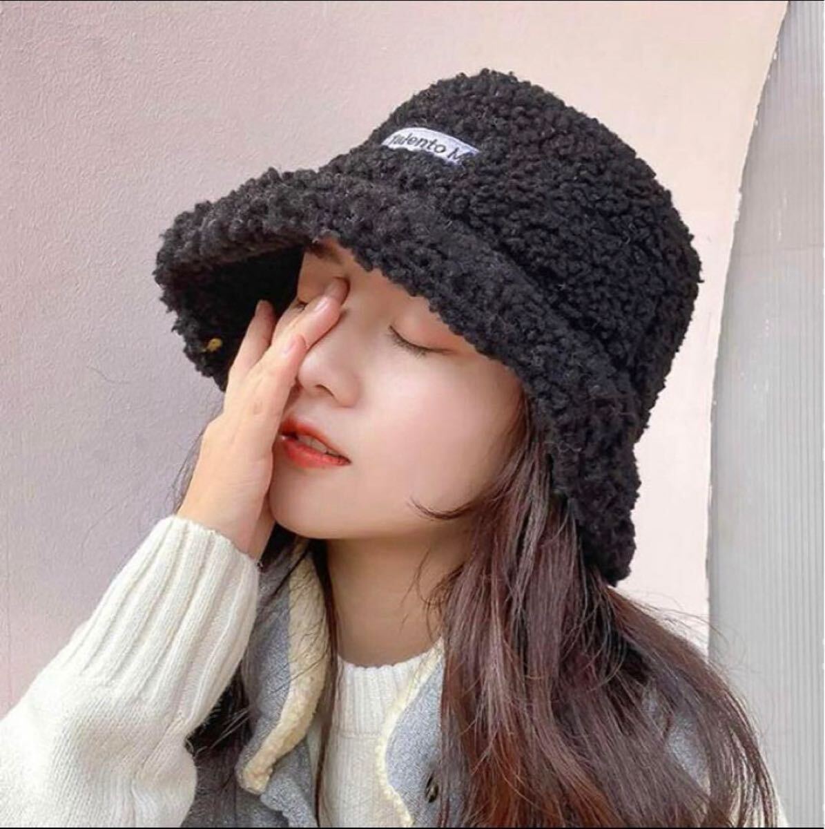 - バケットハット ブラック ボアハット 帽子 つば広帽子 もこもこ 無地