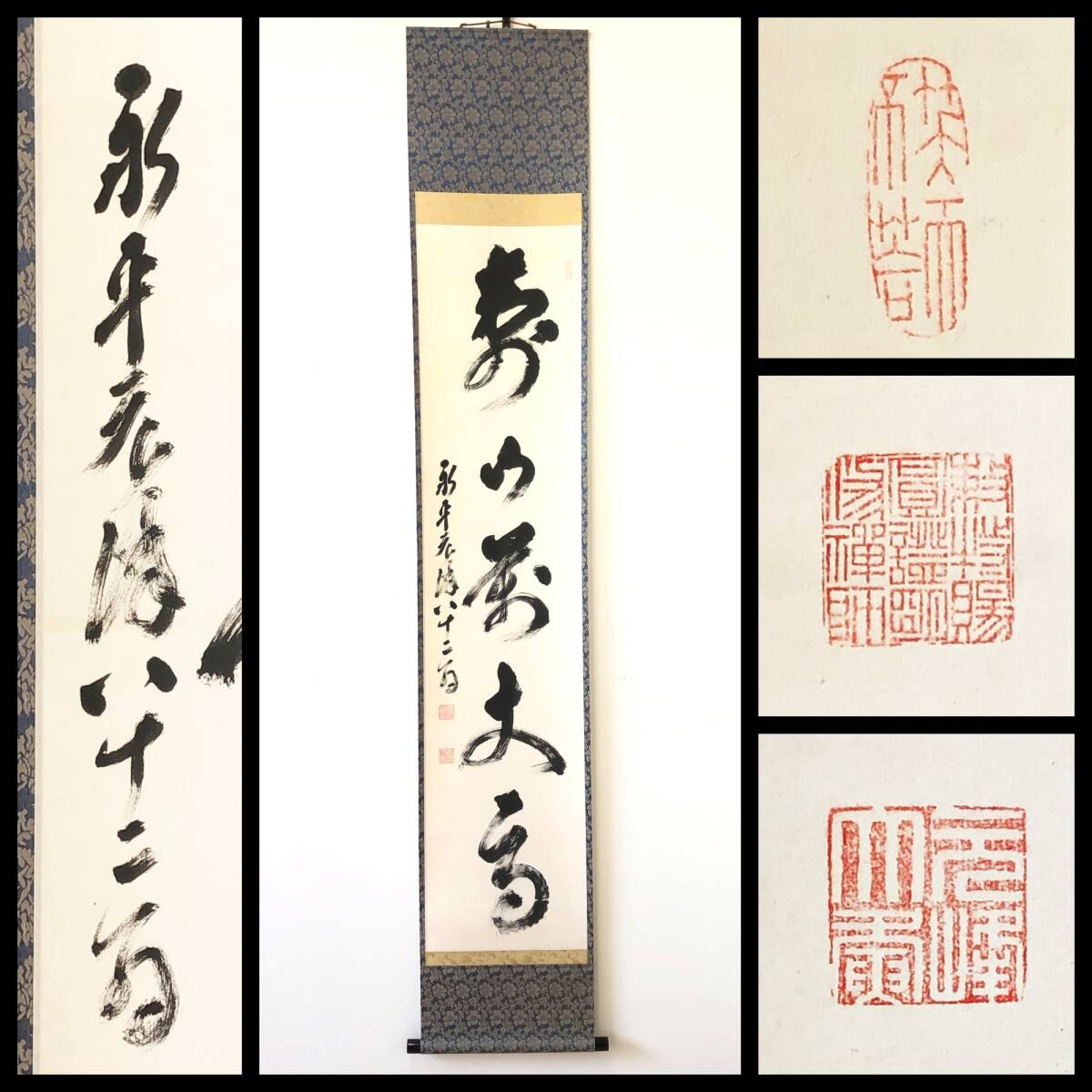 - 【真作】W317【 北野元峰/禅師号・圓證明修禅師/大ゆう 曹洞宗永平寺67代貫主 五字一行書『寿山萬丈高』】掛軸/茶掛/墨蹟/紙本/再表具